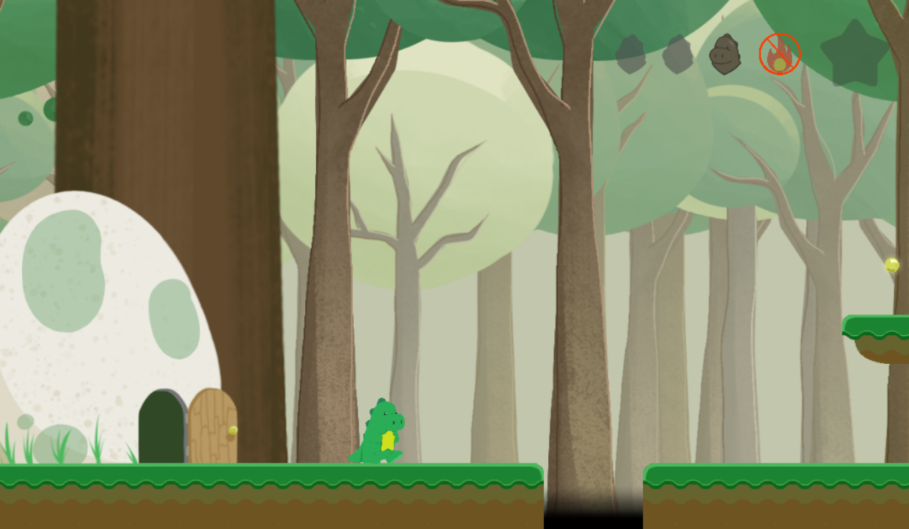To add more interaction to the game, collectible orbs were found around the map. A progress bar was added to the Heads Up Display in the form of a star and would fill up when the orbs were passed through. Once enough orbs were collected, another ability would be unlocked which temporarily gave the player enhanced gameplay such as double jumps and faster attacks. This was shown through a quick animation indicating Gio’s “Super Saiyan” moment. There were also extra life collectibles. These were needed as Gio is unable to shoot fireballs with only one life for added difficulty.